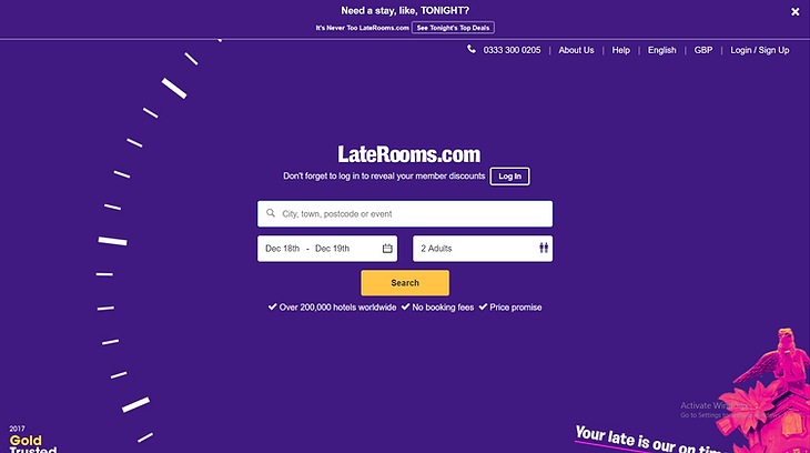 In designing of LateRoom.com new website, the focus has to be on the 20% of features and functionality that is most crucial for users.