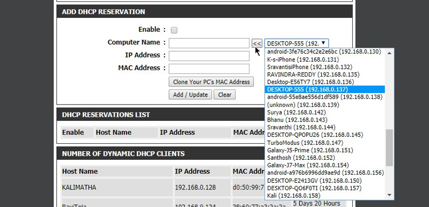 You can see the DHCP Reservation List contains one device.