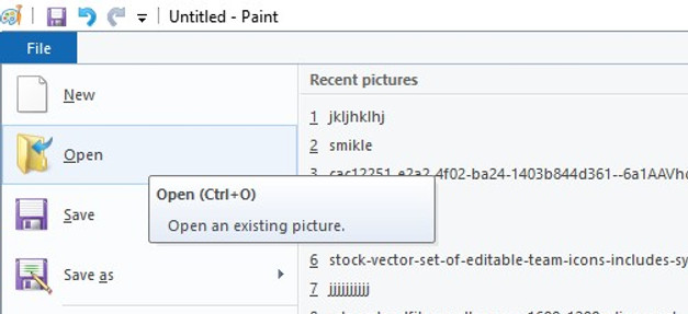 Load the picture you want to work with. Select the image file under the "File" menu or cut and paste it into a new MS Paint window.